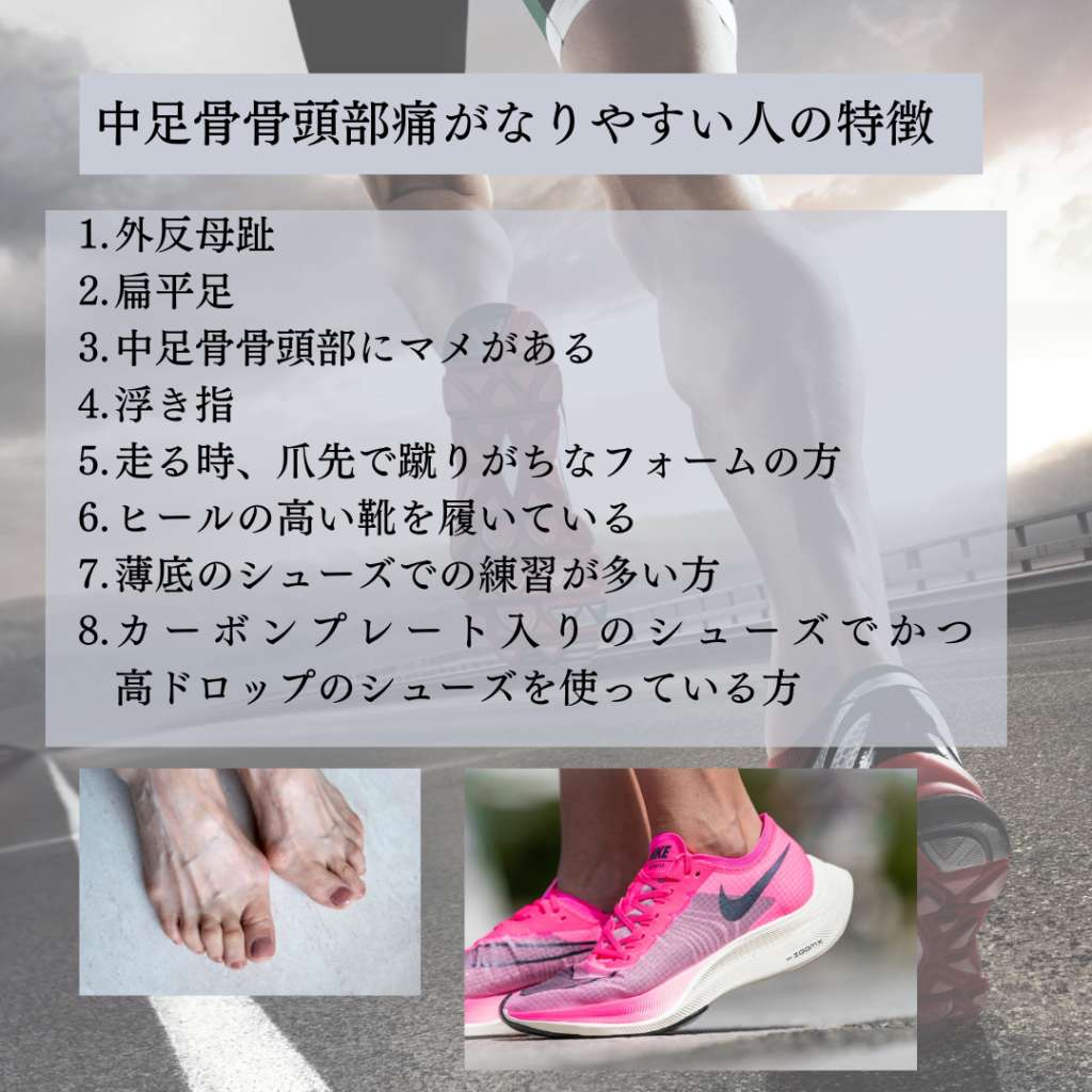 中足骨骨頭部痛は僕自身もかつて患ったことのある怪我であり、丁度足の指の付け根に痛みが生じます。