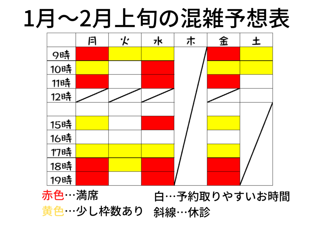 1月~2月初旬の混雑予想表