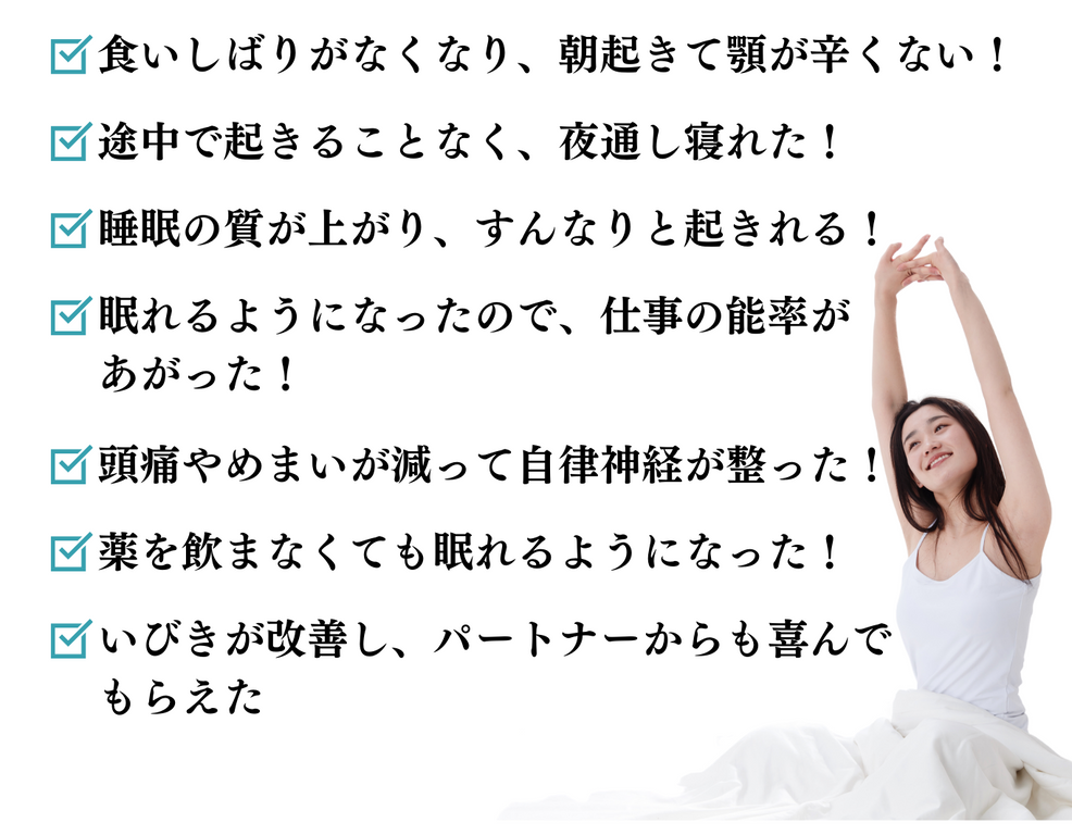 寝つきが悪い、寝ても体がスッキリしない時、顎周りが疲れてはいませんか?