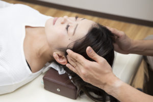 ヘッドマッサージを行い頭蓋骨調整をし、頭に向かう血流を促し、自律神経を整えていきます。